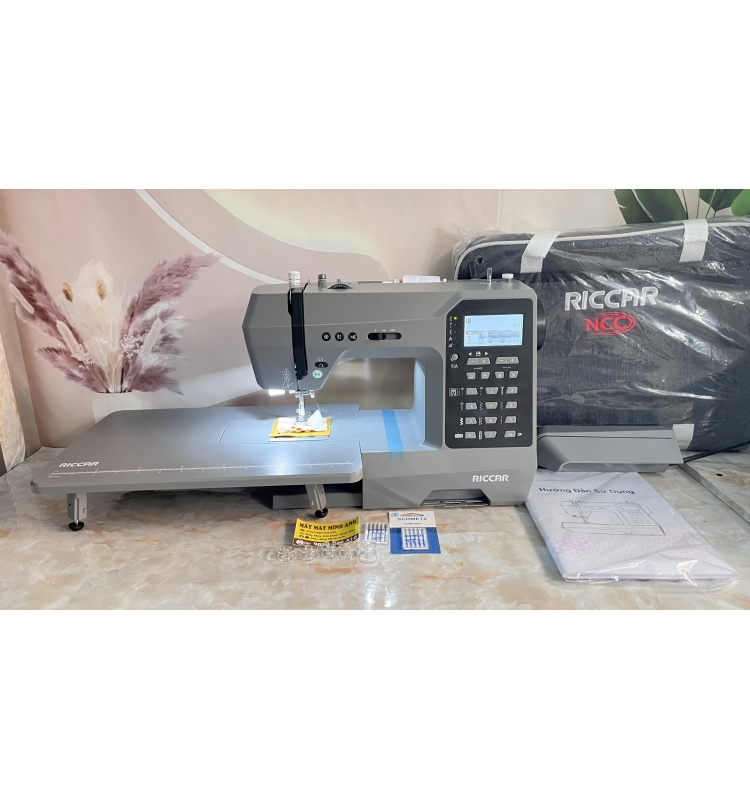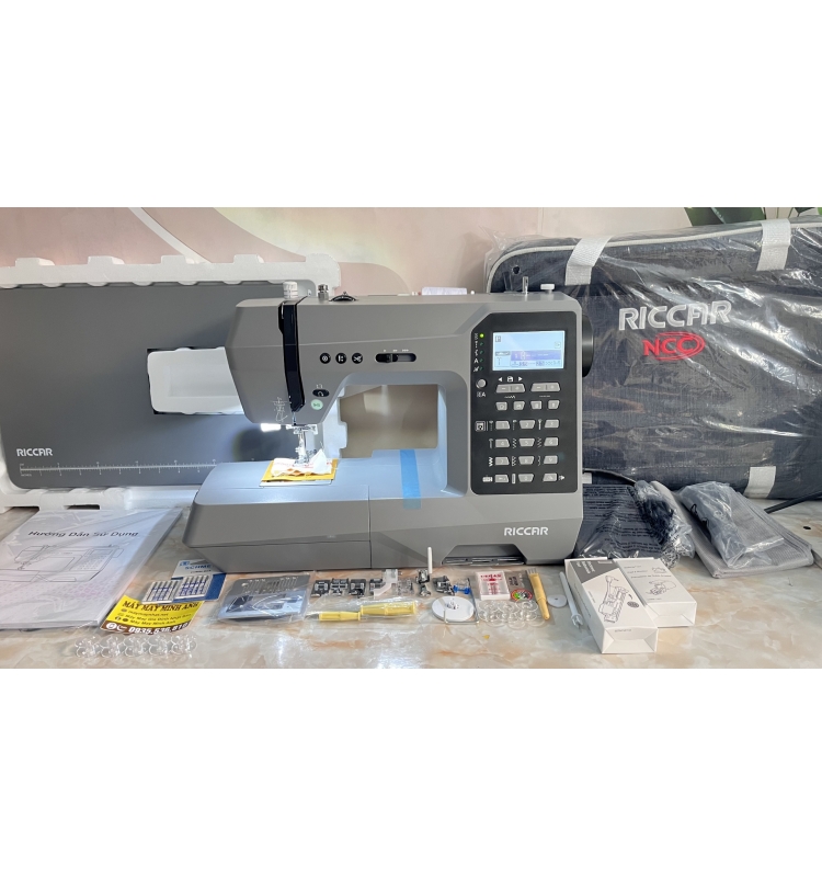 Phụ kiện kèm máy gồm : bộ 10 chân vịt (cơ bản, tra dây kéo, giả vắt sổ, may lai, may đắp, thùa khuy, đơm nút, chân may vải mỏng, thêu tự do, chần bông), bàn ga, dây nguồn, cọc chỉ đứng, mặt nguyệt chuyên may, vít thay kim, cử chần bông, 1 kim đôi, dao rọc khuy tháo chỉ